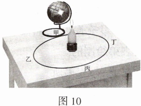 图10为同学们利用自制地球仪演示地球公转示意图。读图,完成7—8题。