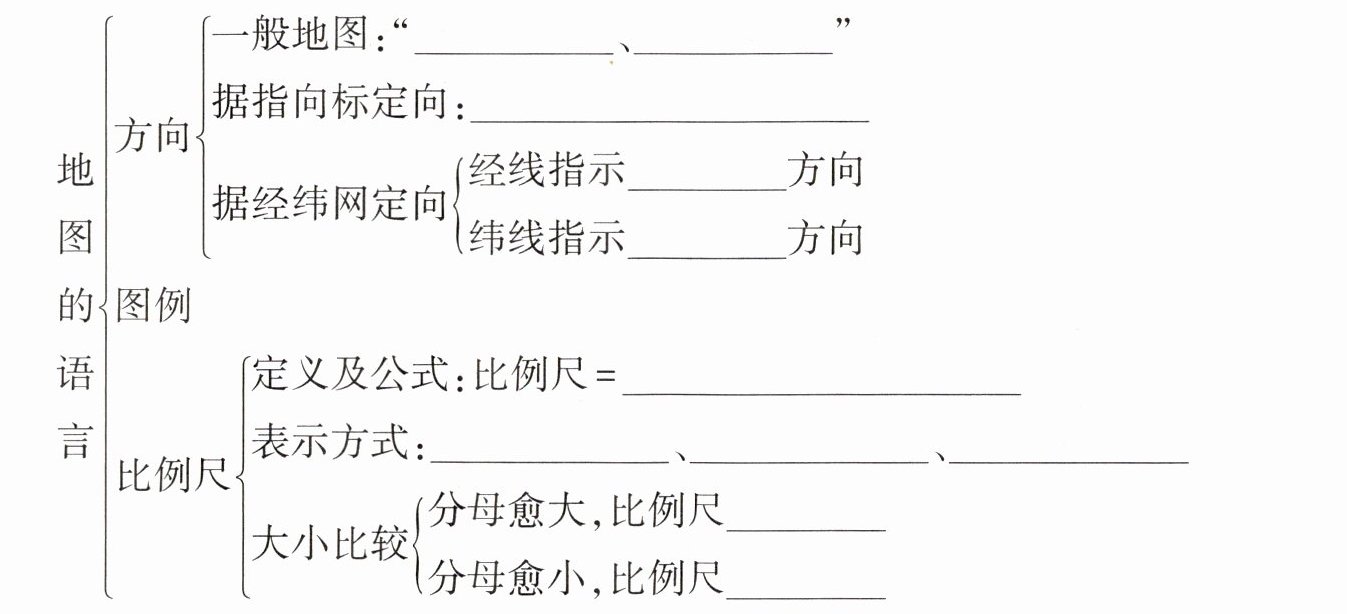 (4) 比例尺的大小:数字式比例尺的分母越大,比例尺越____;分母越小,比例尺越____。