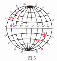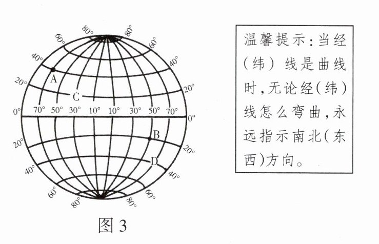 ① A、B两点不在同一条经线上,又不在同一条纬线上,如何确定这两者之间的相对位置?