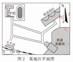 ② 在图2中标注东(E)、南(S)、西(W)三个方向。
