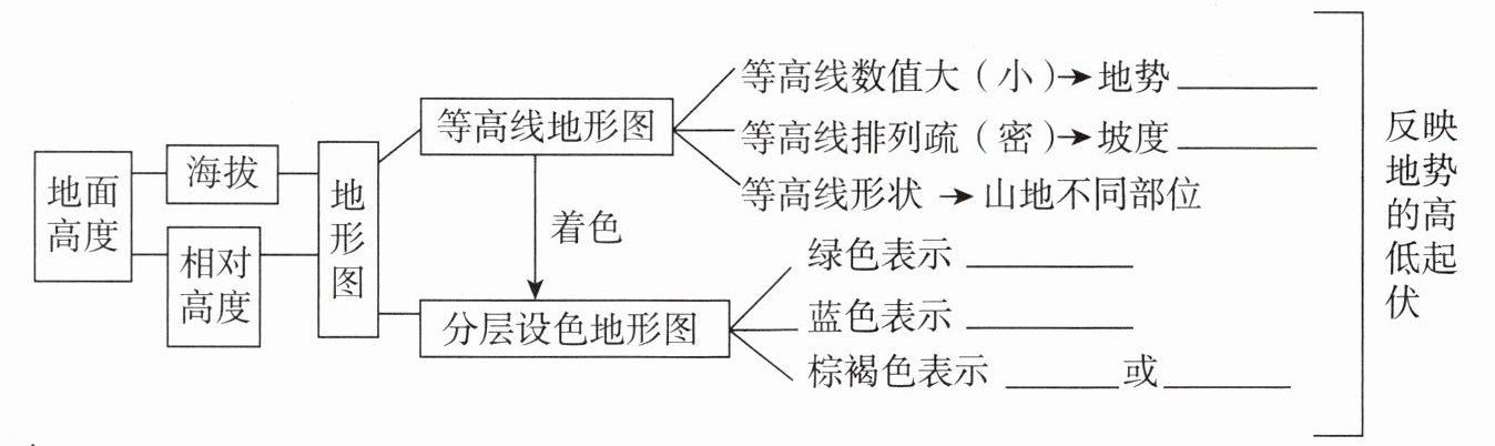高(低);缓(陡);平原;海洋;山地;高原
