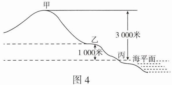 2. 甲、乙两地的相对高度是(