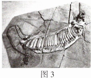 2023年2月10日,中国地质大学宋教授团队发现一个距今2.508亿年的特异埋藏化石库——贵阳生物群。专家已于其中已经发现了硬骨鱼、软骨鱼等生物化石。读图3海洋生物化石图,完成1—3题。