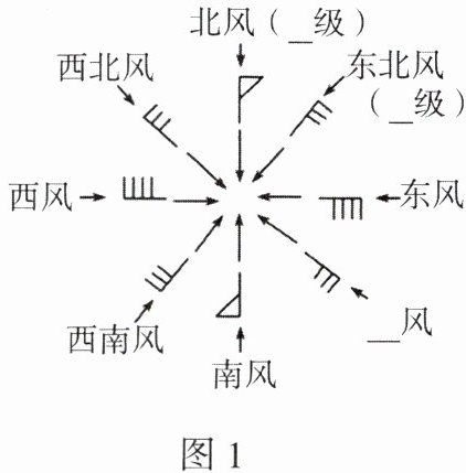 1.阴晴 气温 降水 风 2.来向 风速大小