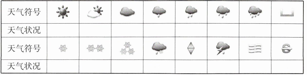 表示天气状况。4. 在下表中填写天气符号表示的天气状况。
