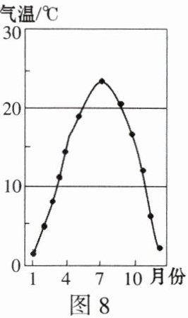 3. 图8是某地气温年变化曲线图,读图,回答下列问题。