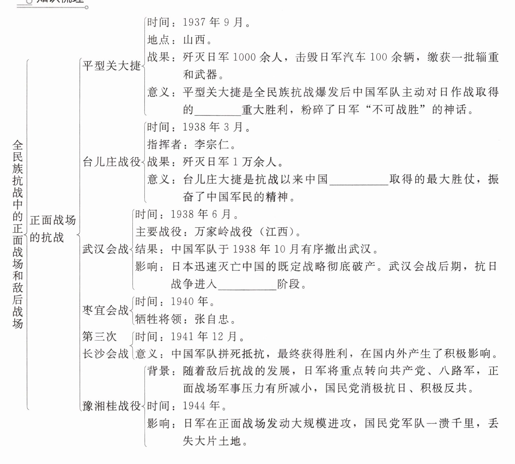 第一个 正面战场 战略相持 延安 彭德怀 共产党和八路军 左权 政治诱降 军事打击 皖南事变 太平洋 中国远征军 敌后战场 三分之二 中国战场