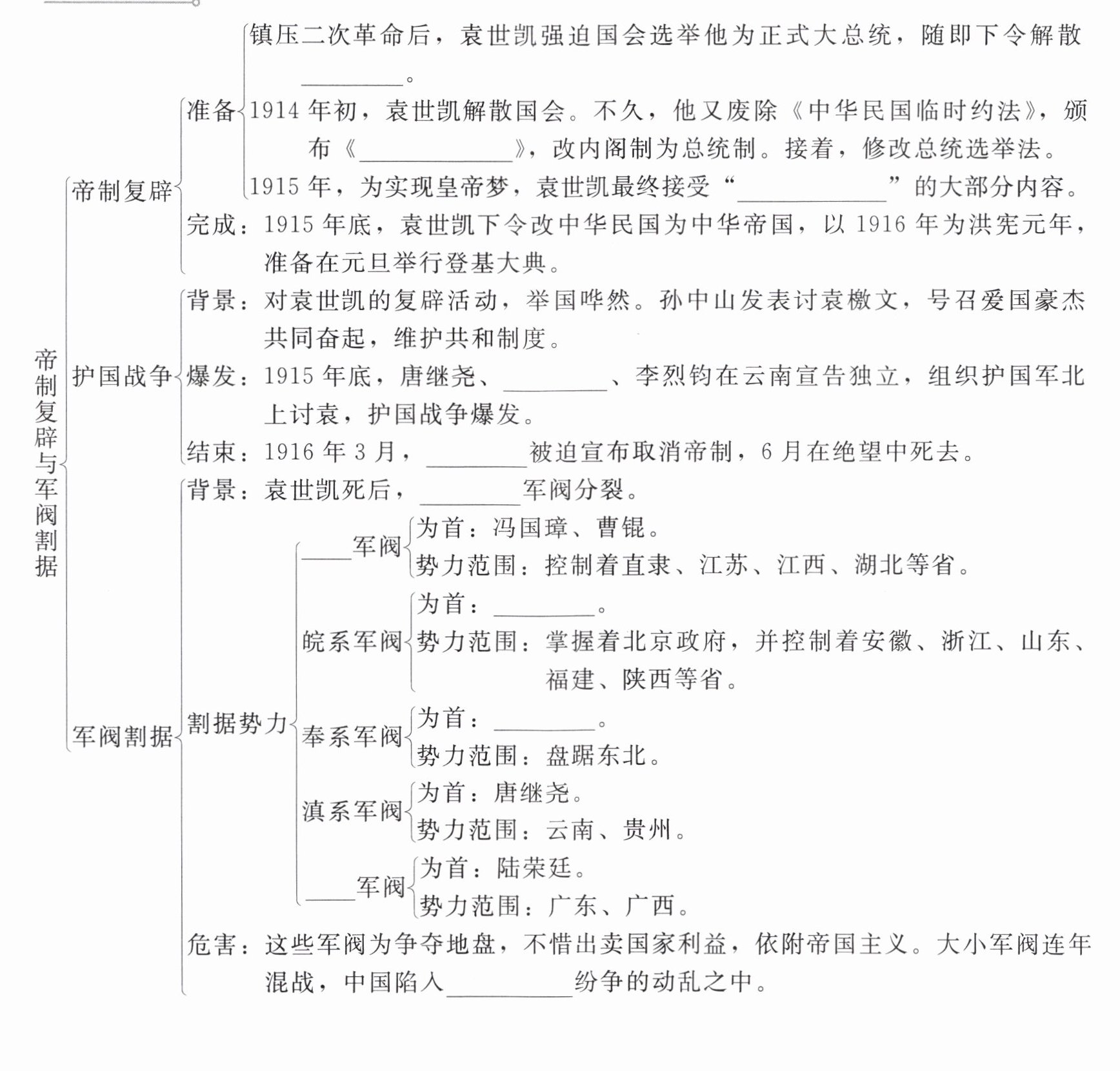 国民党 中华民国约法 二十一条 蔡锷 袁世凯 北洋 直系 段祺瑞 张作霖 桂系 军阀割据