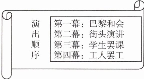 4. 下图是某校八年级历史兴趣小组的同学们排练的历史课本剧的演出顺序。据此,推断该剧所反映的历史事件是( )。