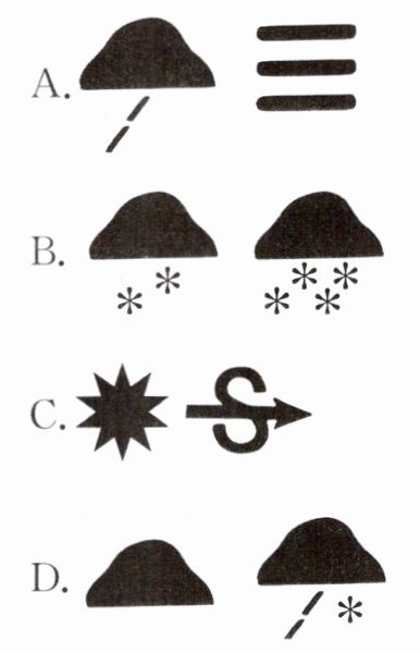 3. 下列天气符号中,与长江中下游地区的天气相符的是(