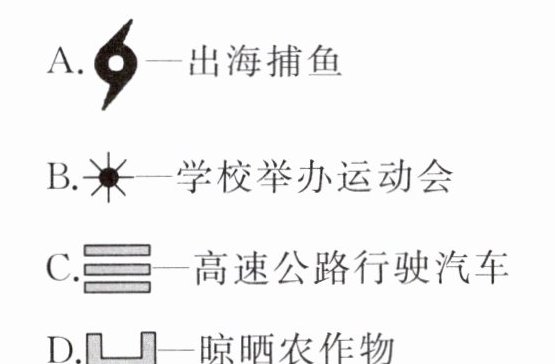1. 下列天气符号的判读与人们所进行的活动搭配,正确的是(