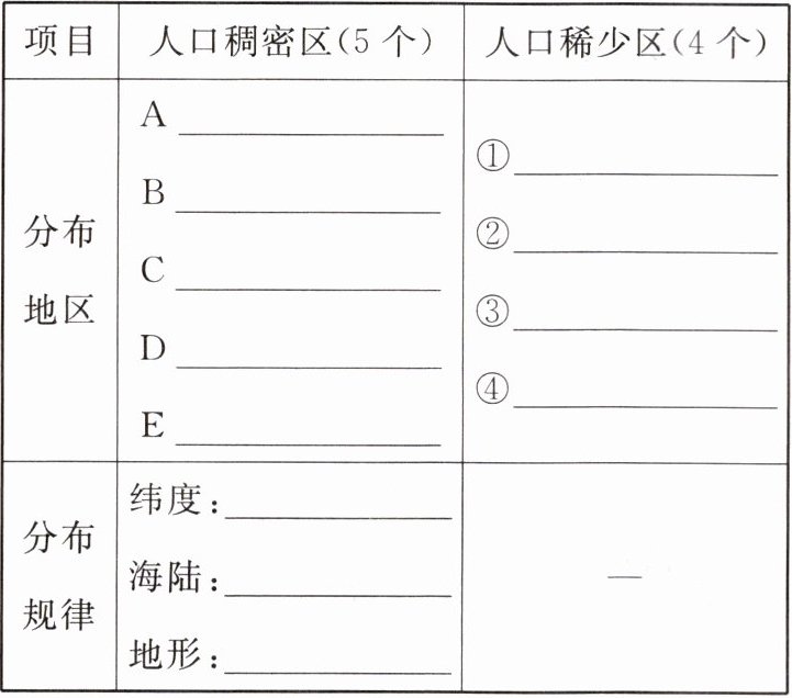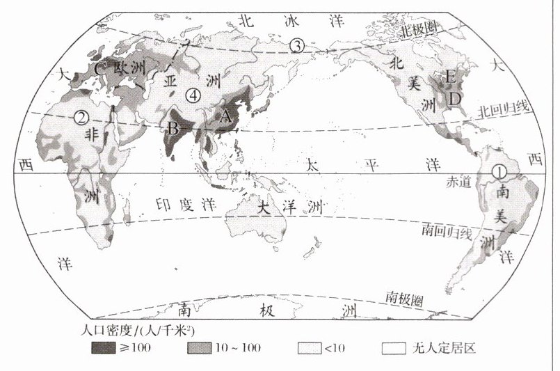 | | C 欧洲西部 | ③ 亚洲北部(高纬度寒冷地区) |