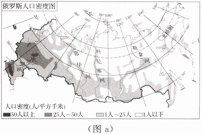 (1)人口分布不均匀,西部(欧洲部分)人口密集,东部(亚洲部分)人口稀疏