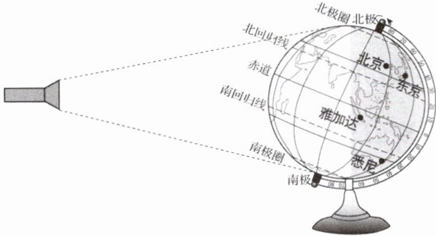 观察实验:用打开的手电筒模拟太阳,将地球仪放置在手电筒前方,拨动地球仪,演示地球自转。