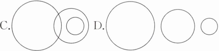 (3)下列选项中的大、中、小圆分别表示河外星系、太阳系、地月系,其中能正确表示它们三者关系的是(
