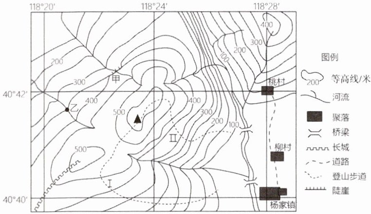 (1)出发当天,小明用等高线地形图知识向爷爷推荐Ⅰ线作为登山首选,小明向爷爷推荐的理由是