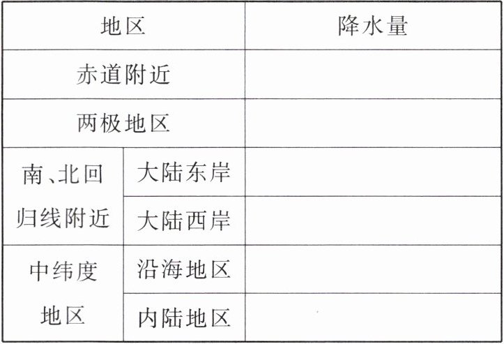 (1)导致赤道地区和两极地区降水量差异的因素是什么?