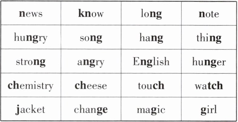 一、朗读下面的单词,在每一行中找出粗体部分读音不一样的单词,并将其圈出来。