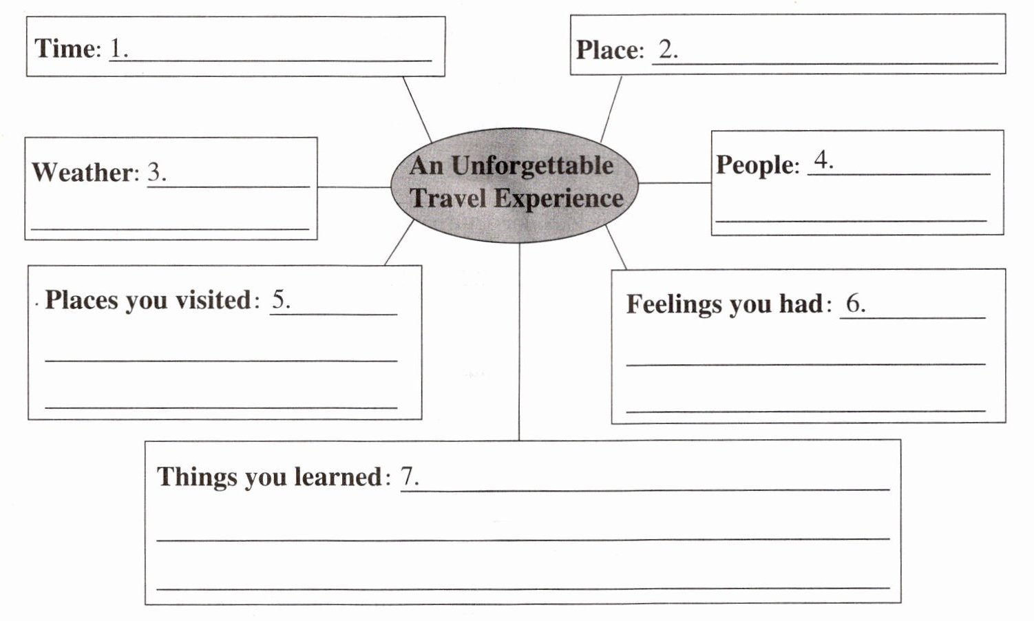 七、在每个人的成长过程中,总有一些旅行令人难以忘怀。请你结合自己的实际经历,完成下面的思维导图。
