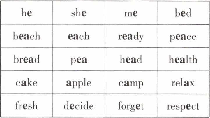 一、朗读下面的单词,在每一行中找出粗体部分读音不一样的单词,并将其圈出来。