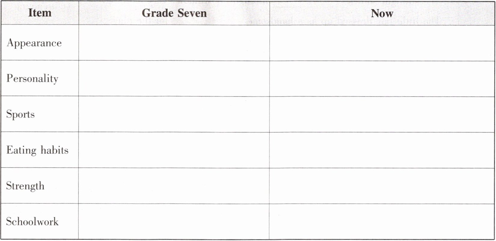 九、同学们,与七年级时的自己相比,现在的你们一定有很大变化吧?请你根据表格提示,用英语写出几句含有比较级的句子,描述自己的变化,将短文内容补充完整(80 词左右)。