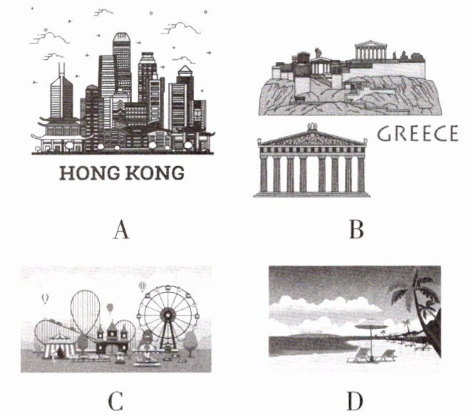 Dad said, "Greece will be a great vacation place. Its ancient buildings are wonderful!" Mum said, "I would like to enjoy the quiet beaches of Bali. The blue sky and cool water are nice and we can feel relaxed from the busy life." Their daughter, Lily, 16, thought differently, "Hong Kong is my dream vacation place. The busy city, special culture and delicious food will be a special experience!" Their little son Max, 6 years old, shouted, "I want to visit a park with exciting rides!"