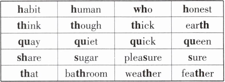 画圈的单词是:honest though quay pleasure bathroom