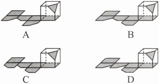 过正方体中有公共顶点的三条棱的中点切出一个面, 得到右图所示的几何体. 该几何体展开图为 (
