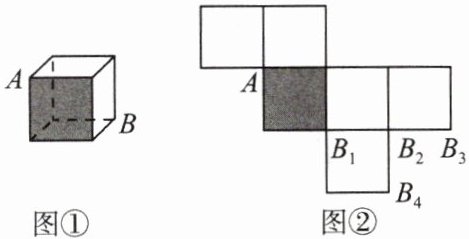 4.如图①,点A,B是正方体上的两个顶点,将正方体按图②所示方式展开,则在展开图中点B的位置是哪个点呢?