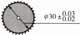 5. 下图是图纸上一个零件的标注,$\varphi 30\pm \frac{0.03}{0.02}$表示这个零件直径的标准尺寸是 $30\mathrm{mm}$,实际产品的直径最大可以是 $30.03\mathrm{mm}$,最小可以是(