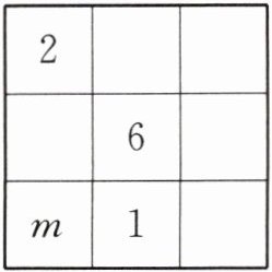 6. 下图是一个$3×3$的正方形格子,要求横、竖、对角线上的三个数的和相等,请根据图中提供的信息求出$m$等于
