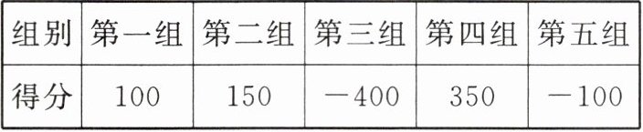 (2)由表格可知,第一名是第四组,得分为$350$分,第五名是第三组,得分为$-400$分。