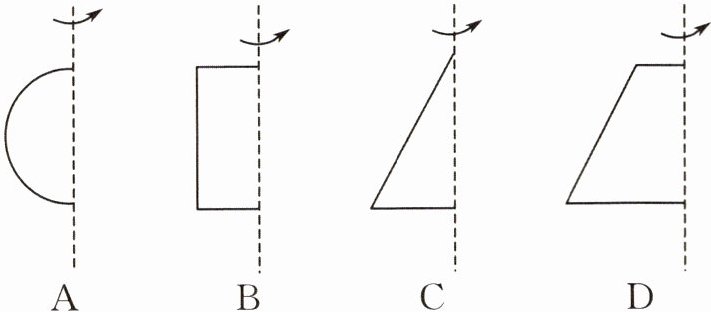 4. (2022·四川自贡中考)如图,将矩形纸片ABCD绕边CD所在的直线旋转一周,得到的立体图形是 (