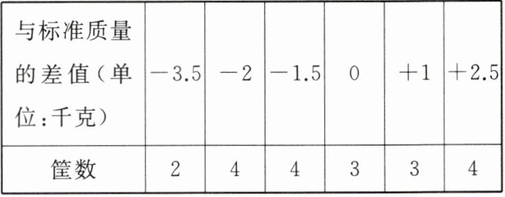 8. 有 20 筐土豆(筐的重量忽略不计),以每筐 18 千克为标准,超过或不足的千克数分别用正、负数来表示,统计数据如表: