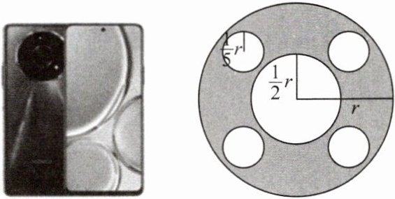 8.某款手机后置摄像头模组如图所示,其中大圆的半径为$r$,中间小圆的半径为$\frac{1}{2}r$,4个半径为$\frac{1}{5}r$的高清圆形镜头分布在两圆之间.