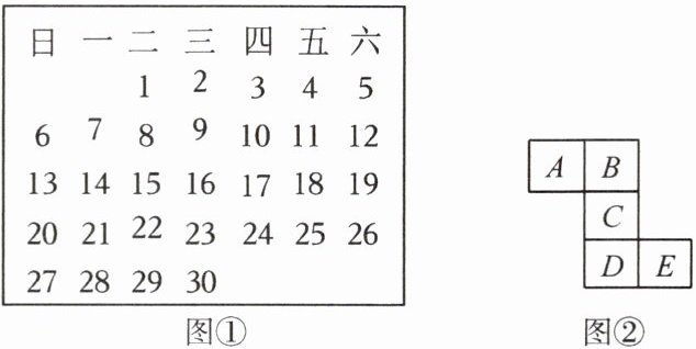 8. 框图①是某年11月的日历,用图②的“Z”字型方框框住日历中的五个数,这五个数从小到大依次为$A$,$B$,$C$,$D$,$E$.这五个数的和能被5整除吗?为什么?
