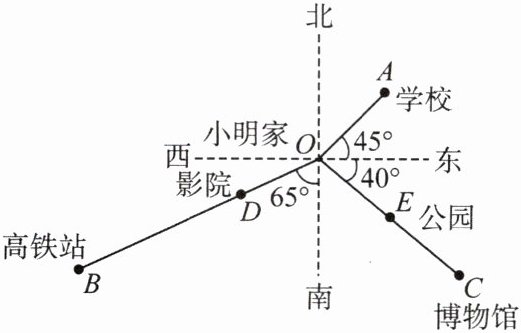(2)以小明家为参照点,请用方位角和实际距离分别表示学校、公园、博物馆、影院、高铁站的位置.