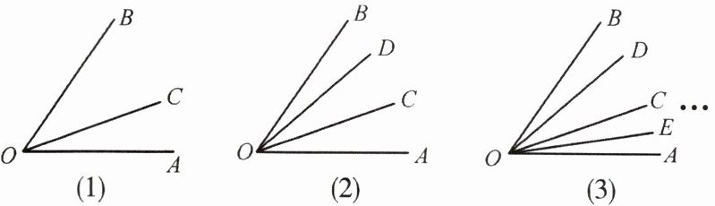 如图,在锐角$∠AOB$内部画1条射线,可得