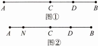 (2) 如图②,点$N是线段AC$上的一点,且满足$NC = 3AN$,求$DN$的长度;