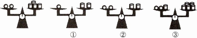 1. 如图,相同形状的物体的重量是相等的,其中最左边天平是平衡的,则右边三个天平中仍然平衡的是(