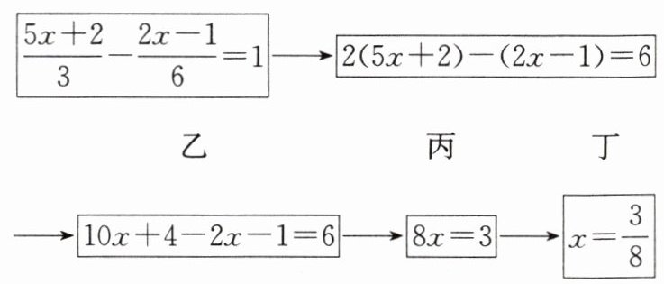 2. 小组活动中,同学们采用接力的方式求一元一次方程的解.规则:每人只能看到前一人给的式子,并进行一步计算,再将结果传递给下一人,最后求出方程的解.过程如下