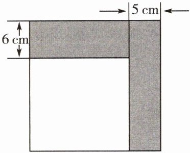 2. 如图,小刚将一个正方形纸片剪去一个宽为 5 cm 的长条后,再从剩下的长方形纸片上剪去一个宽为 6 cm 的长条.如果两次剪下的长条面积正好相等,则两个被剪下的长条的面积之和为(