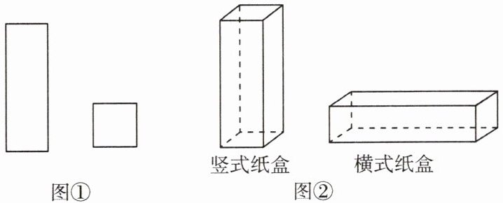 5. 某工厂用图①所示的长方形和正方形纸板,做成图②所示的竖式与横式两种长方体形状的无盖纸盒.