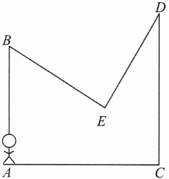 2. 学校开展艺术节活动,小明站在距离教学楼( $ CD $ )35 米的 $ A $ 处,操控一架无人机进行摄像,已知无人机在 $ D $ 点处显示的高度为距离地面 30 米,无人机沿直线匀速飞行到点 $ E $ 处悬停拍摄,此时显示距离地面 10 米;随后无人机沿着直线飞行到点 $ B $ 处悬停拍摄,此时正好位于小明的头顶正上方( $ AB // CD $ ),且显示距离地面 25 米. 已知无人机从点 $ D $ 匀速飞行到点 $ E $ 所用的时间与它从点 $ E $ 匀速飞行到点 $ B $ 所用的时间相同,则无人机从点 $ D $ 到点 $ E $ 再到点 $ B $ 一共飞行了多少米? 请写出计算过程.