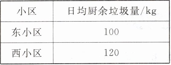 某社区计划在 4 月份开展厨余垃圾减量化宣传活动.社区环保志愿者首先对该社区辖内住户数相同的东、西两个小区 3 月份的日均厨余垃圾量进行了调查统计,调查结果如表: