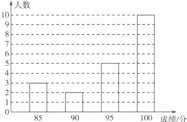 8. 某学校八年级(2)班有 20 名学生参加学校举行的“学党史、看红书”知识竞赛,他们的成绩统计如图.这个班参赛学生的平均成绩是
