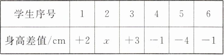 |身高差值/cm|+2|x|+3|-1|-4|-1|