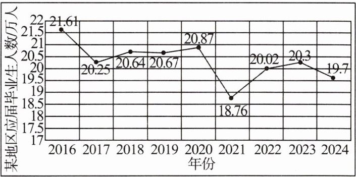 8. 下图是2016年至2024年某地区普通高中应届毕业生人数的统计图,则这些年中该地区应届毕业生人数的中位数是