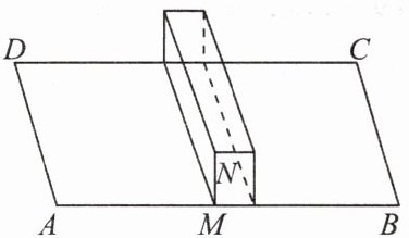 1. 首先,将长方形地面$ABCD$和砖墙展开: