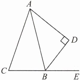 16. 如图,D为△ABC外一点,BD⊥AD,BD平分△ABC的一个外角,∠C= ∠CAD.若AB= 10,BC= 2,则BD的长为